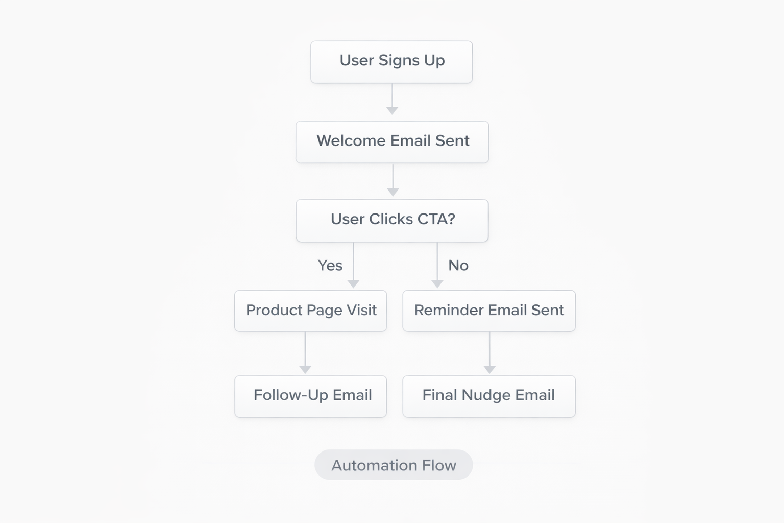 A self-directed exercise where I mapped how a simple trigger could hand off to an email touchpoint, with a focus on naming conventions, repeatable modules, and thinking ahead for ESPs or tools like Zapier. It is learning work: no live client, no production metrics to report.